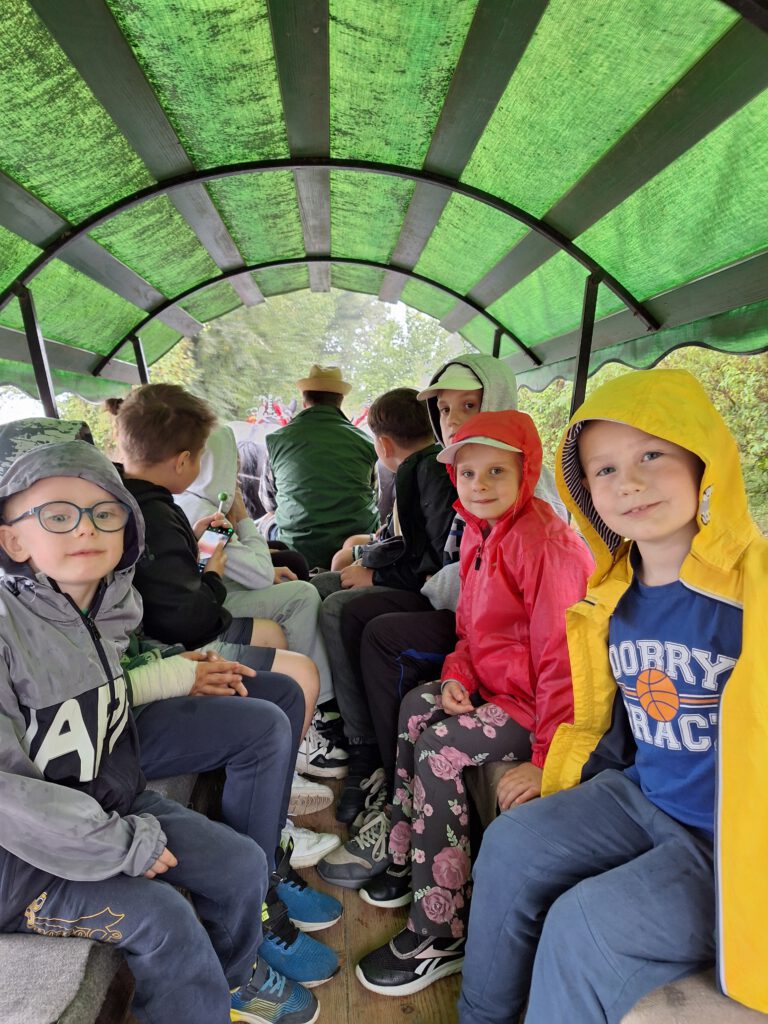 48 uczniów naszej szkoły wraz z wychowawcami udało się na wycieczkę edukacyjną do Stróż, gdzie czekała na nich ogromna skarbnica wiedzy o hodowli pszczół, ale także zajęcia praktyczne na farmie. W ramach wyjazdu uczestnicy zwiedzili skansen i dowiedzieli się „Jak to było kiedyś i jest dzisiaj z tymi pszczołami”, wzięli udział w zajęciach tematycznych „Magia wosku pszczelego”, gdzie własnoręcznie wyrabiali świece i poznali właściwości i zastosowanie naturalnego wosku. Każdy mógł degustować naturalne miody i wyroby z niego wykonane. Dodatkowo obejrzeli teatrzyk o owadzich „Przygodach na łące”, poznali wyroby pasieczne w „Miodowej spiżarni” i wzięli udział w zabawach i animacjach „Pszczeli rój”. Dowiedzieli się, jak ważna jest ochrona pszczół oraz stwarzanie im odpowiednich miejsc do życia. Dużą atrakcją okazała się także przejażdżka wozem konnym po okolicy.