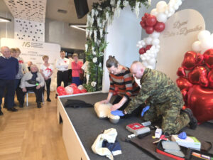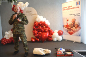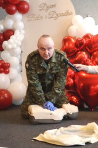 Mjr SG Grzegorz Kaim z Karpackiego Oddziału Straży Granicznej w Nowym Sączu dał pokaz ratownictwa medycznego, podczas którego można było nabyć praktycznych umiejętności. Ochotnicy mogli spróbować na fantomie wykonać samodzielnie resuscytację krążeniowo-oddechową.