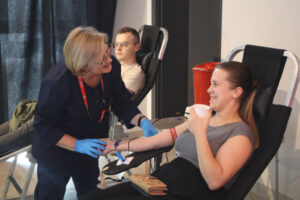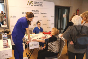 O idei honorowego krwiodawstwa i wynikających z tego profitach mówili z kolei chor. SG Jakub Pacholarz i chor. SG Marcin Chlipała. Zachęcali również do rejestrowania się w bazie potencjalnych dawców szpiku kostnego. Tę ideę rozpowszechniali również na swoim stoisku studenci Akademii Nauk Stosowanych w Nowym Sączu, rozdając ulotki Fundacji DKMS, która się tym zajmuje. Młodzi żacy czynnie wzięli udział również w akcji krwiodawstwa. Bożena Kiemystowicz, prezes Stowarzyszenia Kobiet do Walki z Rakiem Pierwsi Europa Donna, z kolei podczas swojego wykładu informowała seniorki, jak należy badać swoje piersi.