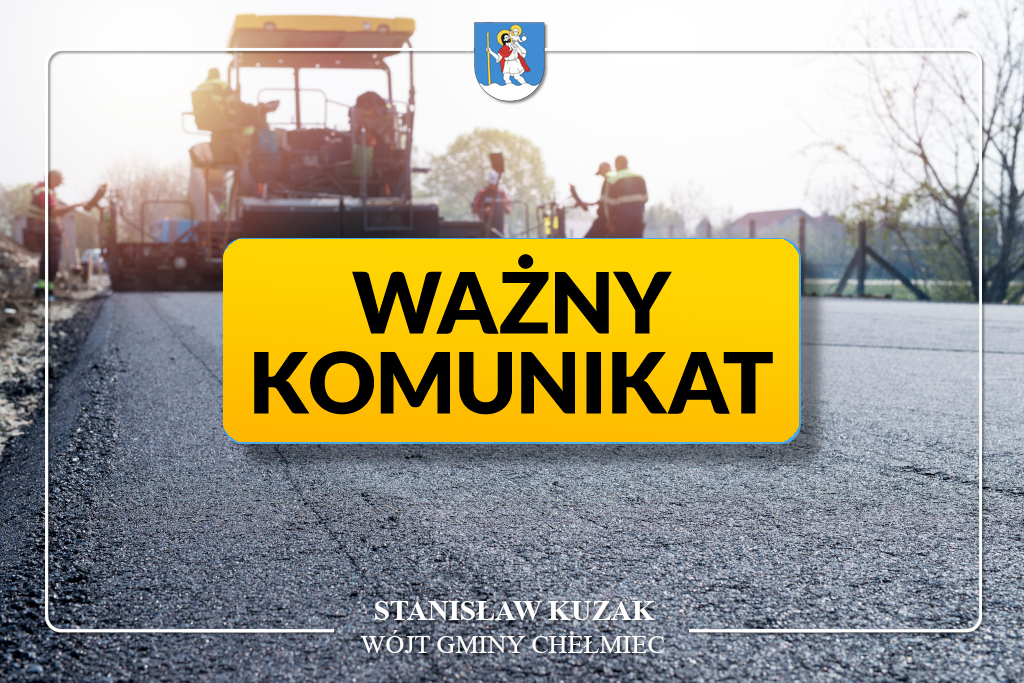 Gmina Chełmiec informuje, że od czwartku, 6 listopada 2025 r. zostanie zamknięty dla ruchu odcinek drogi gminnej w miejscowości Ubiad – w rejonie placu zabaw.