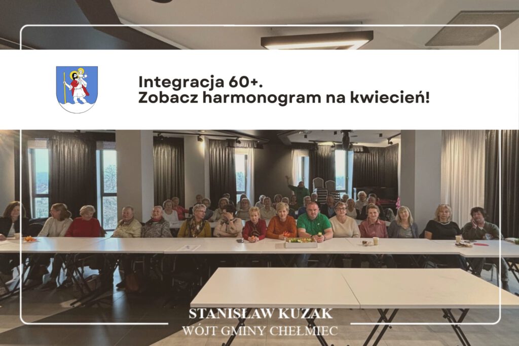 Dostępny jest już harmonogram działań senioralnych na kwiecień 2026 r. Dyrektor GOPS przypomina, że z oferty mogą korzystać wyłącznie osoby mieszkające na terenie gminy Chełmiec oraz spełniające kryterium wieku senioralnego.