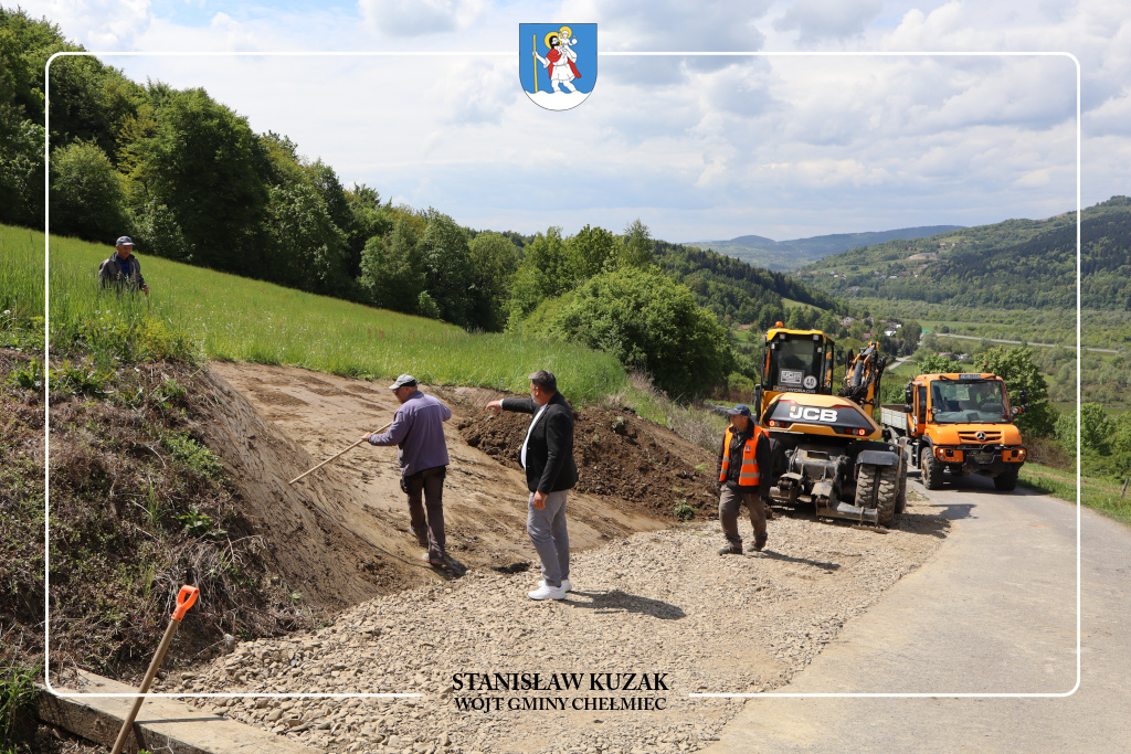 – To jest droga, która wiedzie pod górę. Dwóm samochodom trudno jest się tam minąć, zwłaszcza w okresie zimowym, gdy spadnie śnieg – przyznaje Wojciech Guzik, kierownik Zakładu Gospodarki Komunalnej i Mieszkaniowej w Chełmcu, którego pracownicy wykonują zadanie. – Miejscowe poszerzenie drogi sprawi, że przejazd będzie bardziej funkcjonalny – dodaje.