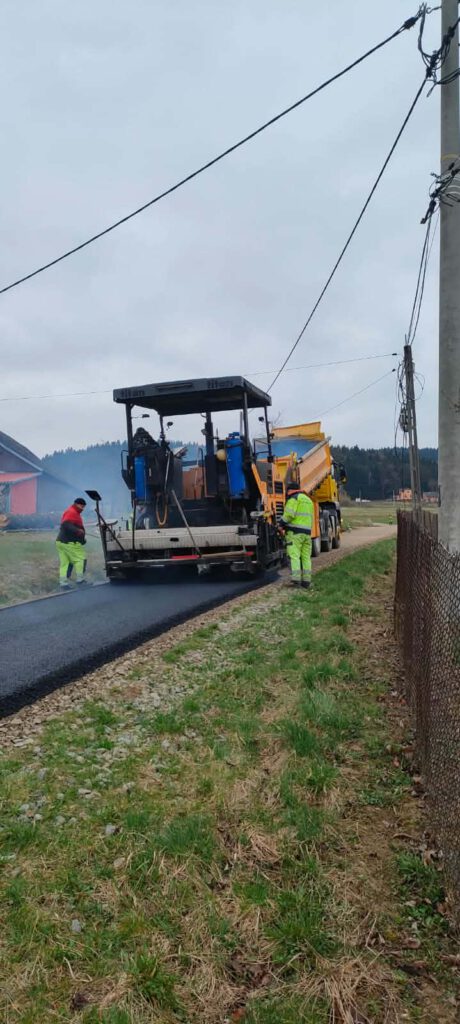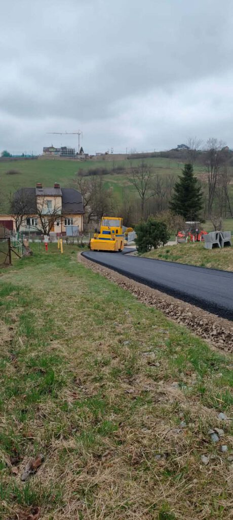 Zakres realizowanych robót obejmuje obecnie wykonanie podbudowy oraz ułożenie warstwy wiążącej nawierzchni asfaltowej. W kolejnych etapach wykonane zostaną korytka ściekowe w istniejącym rowie oraz kraty betonowe umacniające skarpy. Następnie ułożona zostanie warstwa ścieralna nawierzchni asfaltowej, a także wykonane zostaną pobocza.