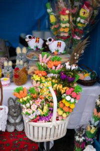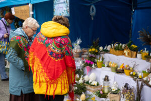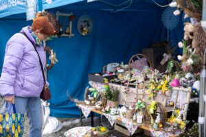 Choć niemal przez cały czas trwania wydarzenia padał deszcz, organizatorzy oraz wystawcy Jarmarku Wielkanocnego nie pozwolili, aby kapryśna pogoda zepsuła świąteczny klimat. Uczestnicy mogli przy stoiskach znaleźć nie tylko pyszne wypieki i piękne świąteczne ozdoby, ale także wiele uśmiechu i życzliwości. – Na śmigus-dyngus też trzeba się przygotować – żartowali wystawcy.