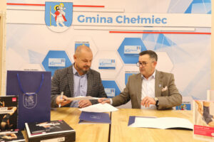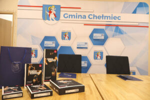 Stół, przy którym wójt Stanisław Kuzak podpisuje deklaracje o współpracy z kolejnymi Parterami Karty Chełmieckiej, wypełnił się produktami medycznymi i sportowymi. Do Programu KCh przystąpił bowiem Sklep medyczny Kickflexmed.