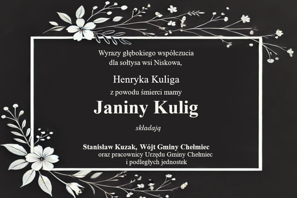 Panu Henrykowi Kuligowi, sołtysowi wsi Niskowa, oraz całej Rodzinie składamy najszczersze kondolencje i wyrazy głębokiego współczucia.