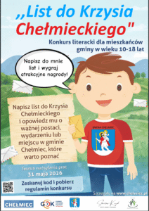 Jedną z tych inicjatyw jest ogłoszony właśnie konkurs literacki ph. „List do Krzysia Chełmieckiego”, skierowany do mieszkańców gminy Chełmiec w wieku 10-18 lat oraz wszystkich uczniów szkół podstawowych i ponadpodstawowych, mających lokalizację na terenie gminy Chełmiec.
