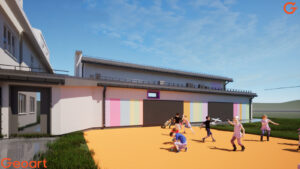 Wizualizacja sali gimnastycznej przy SP w Krasnem Potockiem. Projekt: Geoart