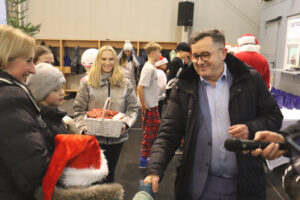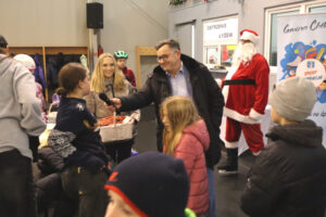 Lodowisko odwiedził również wójt gminy Chełmiec, Stanisław Kuzak, który z ogromną radością przywitał dzieci i rodziców. Wójt pochwalił najmłodszych za to, że tak chętnie i aktywnie spędzają czas na świeżym powietrzu: