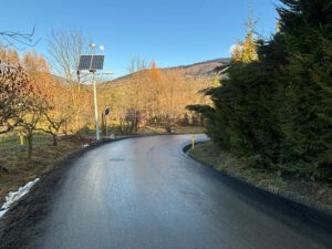 Zakres robót obejmował poszerzenie odcinka o długości 290 metrów bieżących, co znacząco wpłynęło na komfort mijania się pojazdów oraz płynność ruchu. Droga została przygotowana poprzez profilowanie i zagęszczenie podłoża, a następnie pokryta nową nawierzchnią asfaltową składającą się z warstwy wiążącej i ścieralnej.