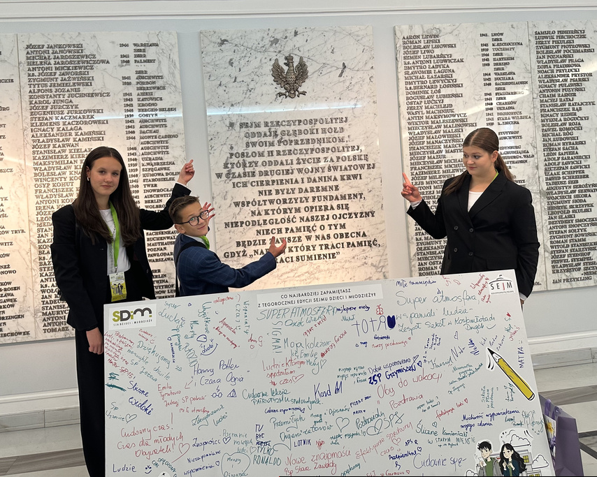 Grupa uczniów ze Szkoły Podstawowej im. Św. Jana Pawła II z Chomranic: Weronika Sekuła, Aleksandra Dudzic oraz Dawid Pacholarz, pod opieką nauczycielki historii Grażyny Ogorzałek uczestniczyła w XXXI sesji Sejmu Dzieci i Młodzieży w Warszawie. Tegoroczna edycja SDiM przebiegła pod hasłem: „PorozmawiajMY o edukacji obywatelskiej”.