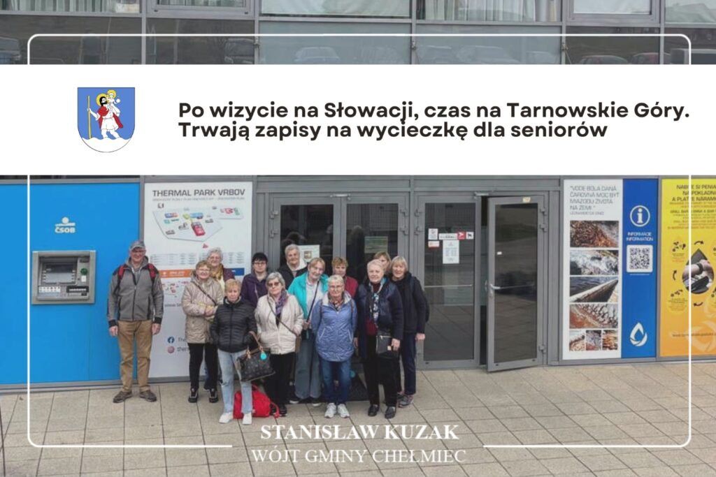 Ledwie zdążyli wrócić z wycieczki na Słowację, a już Gminny Ośrodek Pomocy Społecznej w Chełmcu organizuje dla nich kolejną wyprawę. Seniorzy z gminy Chełmiec 14 maja br. będą mieli okazję zwiedzić Tarnowskie Góry. Ruszyły zapisy na wycieczkę. – Warto się pospieszyć, bo liczba miejsc jest ograniczona – informują organizatorzy, przedstawiając plan zwiedzania.
