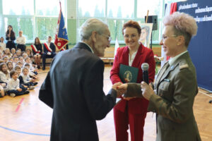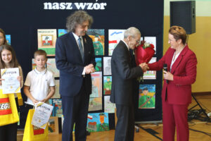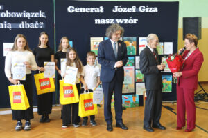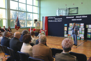 – Myślę, że mój dziadek nie mógł sobie wymarzyć rzeczy piękniejszej niż ta, że nie umrze na wieki – mówił prof. Jerzy Giza, wnuk patrona SP w Wielogłowach, dziękując społeczności szkolnej za uczczenie zasług jego przodka i chęć naśladowania cnót, jakimi się odznaczał. W uroczystościach wziął również udział Tadeusz Giza, syn generała.