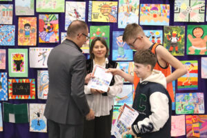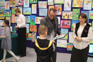 Po zakończeniu uroczystości uczniowie wraz z opiekunami zostali zaproszeni na poczęstunek, oglądali prace swoich rówieśników i robili pamiątkowe zdjęcia.