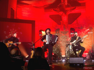 w muzyczną podróż do swojego rodzinnego domu, prezentując najpiękniejsze polskie zwyczaje świąteczne, a także kolędy w nastrojowych aranżacjach z płyty „Kolędy przy kominie”. Występ braci Szczepanik był prawdziwym majstersztykiem, łączącym profesjonalizm z rzadko spotykaną, rodzinną autentycznością. Koncert otworzyły nastrojowe dźwięki gitary akustycznej i pianina, które w połączeniu z ciepłym oświetleniem zamieniły przestrzeń kościoła w przytulny salon. Tomasz Szczepanik, lider zespołu, od pierwszych minut nawiązał niezwykły kontakt z publicznością, przeplatając utwory osobistymi anegdotami o tradycjach wyniesionych z rodzinnego domu.